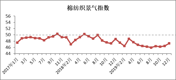 說明:中國棉紡織行業(yè)景氣指數(shù)采集自全國200多家棉紡織企業(yè),通過對多個主要指標(biāo)加權(quán)計(jì)算得出,當(dāng)指數(shù)高于50,表示棉紡行業(yè)景氣程度向好,低于50則表示景氣程度欠佳。