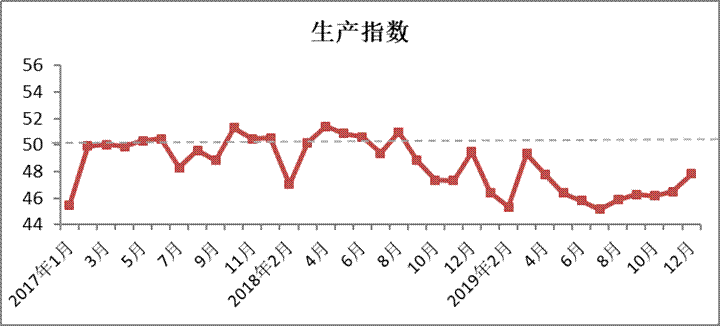 12月原料庫存指數(shù)47.64,與11月相比上升1.25。跟蹤企業(yè)數(shù)據(jù)顯示,12月原棉庫存環(huán)比增加3.79%,化纖短纖庫存環(huán)比下降0.32%。本月美國農(nóng)業(yè)部下調(diào)2019/20年度全球棉花產(chǎn)量預(yù)期、中美第一階段經(jīng)貿(mào)協(xié)議文本達(dá)成一致、儲備棉開始輪入、鄭棉期貨大幅上漲等因素推動國內(nèi)外棉價上漲。國內(nèi)紡企采購以剛需為主,也有部分紡企為夏季訂單提前準(zhǔn)備原料,適量補(bǔ)庫?;w方面,化纖短纖價格總體呈下降趨勢,尤其是粘膠短纖價格大幅下跌,紡企以持幣觀望為主,謹(jǐn)慎采購。