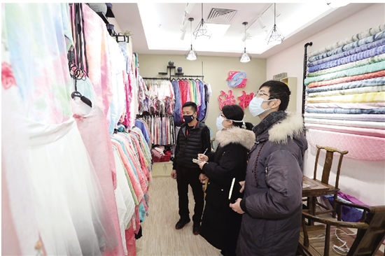 中國(guó)輕紡城國(guó)際面料采購(gòu)中心(原西市場(chǎng))將于近期開(kāi)業(yè)。昨天上午,紹興柯橋開(kāi)發(fā)經(jīng)營(yíng)集團(tuán)有限公司工作人員正在走訪經(jīng)營(yíng)戶,詢問(wèn)開(kāi)業(yè)需求,以提供對(duì)應(yīng)服務(wù)。