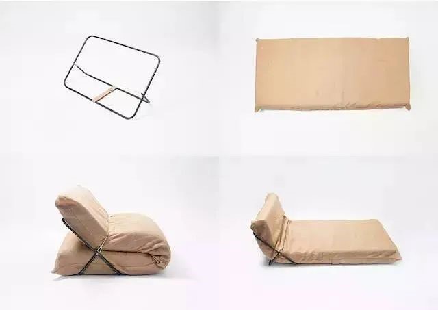 它由框架和床墊組成,這個(gè)金屬框架是可折疊的,打開后,你可以把床墊塞進(jìn)里面,既可以把它變成帶靠背的舒適椅子,也可以把它變成你可以靠進(jìn)去的躺椅。極簡(jiǎn)結(jié)構(gòu)展現(xiàn)十足機(jī)能,隨地快速組裝的特點(diǎn),也解決小房間住宅或救災(zāi)現(xiàn)場(chǎng)的即時(shí)需求。