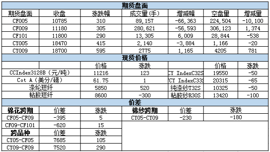棉紗期貨價格大幅低于現(xiàn)貨價格,建議有采購意愿且真實需求企業(yè)可以考慮在期貨采購。
