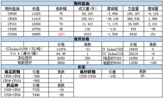 棉紗期現(xiàn)價(jià)差縮小,建議觀望。