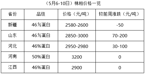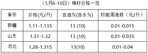 上周(5月6-10日),期貨大豆及豆類產(chǎn)品開(kāi)盤后反彈力度不大,現(xiàn)貨行情持續(xù)調(diào)整。目前棉籽處于青黃不接之時(shí),價(jià)格高位續(xù)漲,下游棉副產(chǎn)品支撐力度有限,油棉廠壓榨虧損加劇,開(kāi)工率持續(xù)下降,市場(chǎng)經(jīng)營(yíng)難度較大。