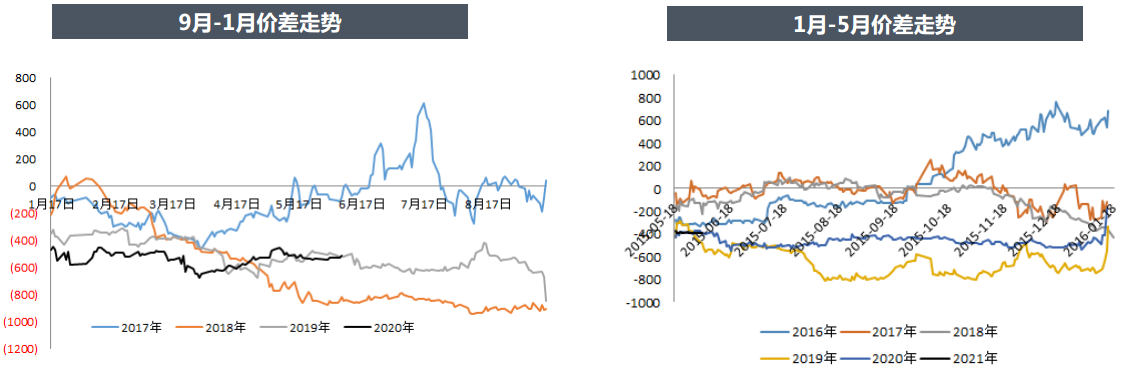 9-1價差近期持續(xù)回落,但考慮未來遠月疫情影響相對較小且消費可能恢復(fù),因此遠月的想象空間更大,可以考慮在低點做大價差。