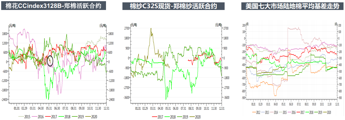 2.套利:目前棉紗和棉花9月合約的價差回歸正常區(qū)間可觀望。棉花9-1價差在-500以內(nèi)可以考慮反套,棉花1-5價差在-350以內(nèi)可以考慮做反套。