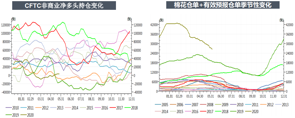 大背景看,國內(nèi)棉花已連續(xù)幾年降庫存,目前庫存已下降到一個相對合理且比較低的位置。從未來一段時間供需角度看,棉花保持近幾年供應(yīng)充足常態(tài),本年度在新花上市前供應(yīng)充足。新花播種面積雖有下降,目前看影響不大,但未來產(chǎn)量如何還得天氣和蟲害等因素影響。需求方面,2/3月由于國內(nèi)疫情影響國內(nèi)消費很差,3/4/5月由于國外疫情影響出口消費也很差。但國內(nèi)消費4月數(shù)據(jù)開始好轉(zhuǎn),預(yù)計5月數(shù)據(jù)將繼續(xù)好轉(zhuǎn),出口方面預(yù)計要等到下半年數(shù)據(jù)才會逐漸出現(xiàn)好轉(zhuǎn)。整體消費雖在逐步恢復(fù),但仍是不如往年同期,疫情帶來消費悲觀影響還會持續(xù)一段時間。短期內(nèi)下游消費有好轉(zhuǎn)跡象,預(yù)計未來的消費數(shù)據(jù)將越來越好。
