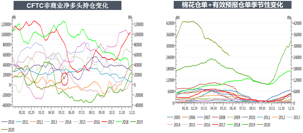 國內(nèi)棉花已連續(xù)幾年降庫存,目前庫存已下降到一個相對合理且較低位置。從未來一段時間供需角度看,棉花保持近幾年供應(yīng)充足常態(tài),本年度在新花上市前供應(yīng)充足,但商業(yè)庫存預(yù)計未來幾個月會同比大幅下降。需求方面,國內(nèi)消費(fèi)5月數(shù)據(jù)大幅好轉(zhuǎn),出口方面數(shù)據(jù)仍差預(yù)計要等到下半年甚至第4季度數(shù)據(jù)才會逐漸出現(xiàn)好轉(zhuǎn)。整體消費(fèi)雖仍不如往年同期,但在逐步恢復(fù),國內(nèi)供需基本面在逐步改善。目前市場仍存在著較大不確定性是蝗災(zāi)和疫情二次爆發(fā)。
