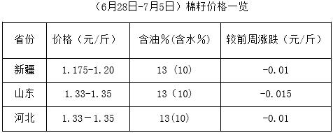 上周(6月28日-7月5日),期貨大豆及豆類產(chǎn)品上周一先行回落,后止跌反彈,現(xiàn)貨市場(chǎng)相應(yīng)調(diào)整,支撐棉籽、棉副行情。但因油棉廠開工一般,經(jīng)營持續(xù)虧損,棉籽價(jià)格高位波動(dòng),棉副產(chǎn)品多處穩(wěn)定狀態(tài),局部小幅調(diào)整,市場(chǎng)難言好轉(zhuǎn)。