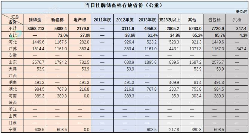 中國儲備棉管理有限公司定于7月8日上市銷售儲備棉重量8068.2134噸,共39捆。具體庫點(diǎn)及數(shù)量見下表。