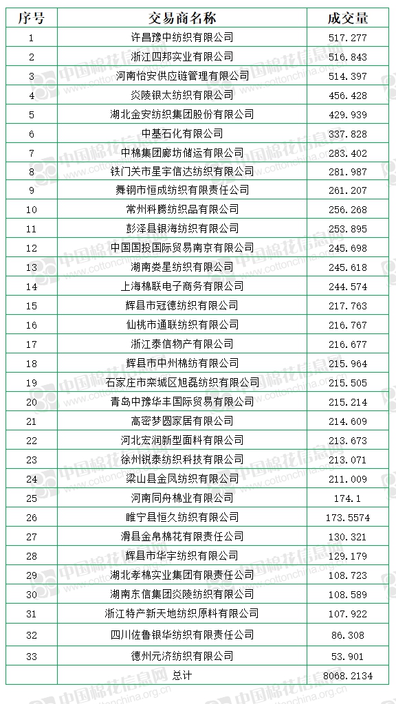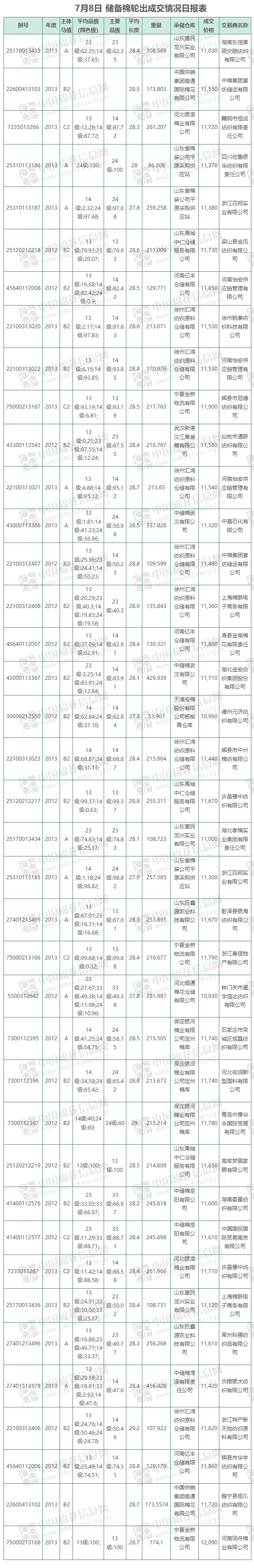 中國儲備棉管理有限公司定于7月8日上市銷售儲備棉重量8068.2134噸,實(shí)際成交8068.2134噸,成交率100%,成交均價(jià)11567元/噸,較7日上漲34元/噸,折3128價(jià)格12918元/噸,較7日上漲83元/噸。