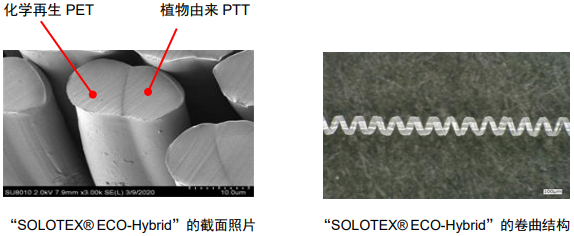 通過(guò)將聚合物穩(wěn)定技術(shù)和賦予功能性的紗線制造技術(shù)相結(jié)合,成功研發(fā)出“SOLOTEX®ECO-Hybrid”