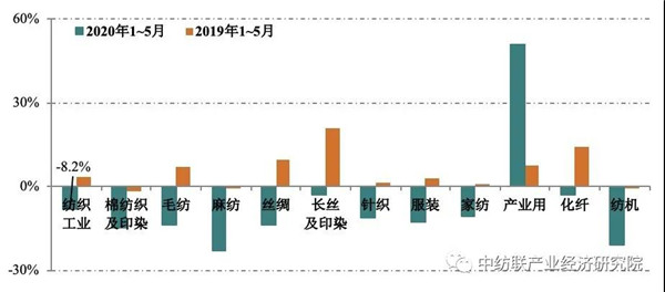 圖1:2020年1-5月紡織工業(yè)分行業(yè)增加值增速
