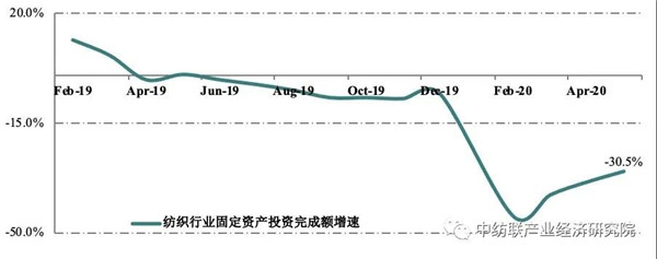 據(jù)國家統(tǒng)計局?jǐn)?shù)據(jù)推算,2020年1-5月紡織行業(yè)固定資產(chǎn)投資完成額同比減少30.5%,增速較上年同期大幅放緩30.9個百分點。全產(chǎn)業(yè)鏈投資規(guī)模均呈下滑態(tài)勢,紡織業(yè)、化纖業(yè)、服裝業(yè)1-5月投資額同比分別減少26.2%、23.2%、39.2%。