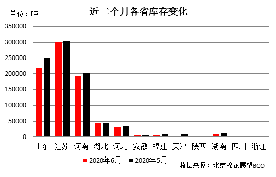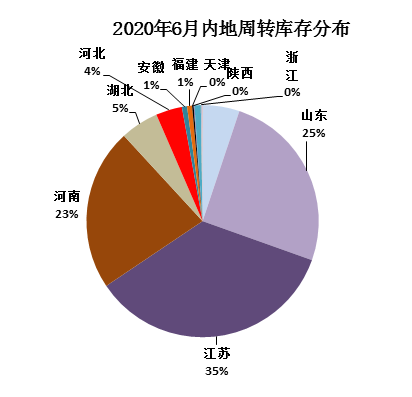 分省份看,江蘇省庫(kù)存量居首位,為30.11萬(wàn)噸,山東省次之為21.72萬(wàn)噸,河南省居第三位為19.36萬(wàn)噸,湖北省為4.57萬(wàn)噸,河北省為3.13萬(wàn)噸,其他省在萬(wàn)噸以下。