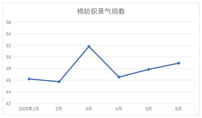 說明:中國棉紡織行業(yè)景氣指數(shù)采集自全國近500家次棉紡織企業(yè),參考國家制造業(yè)PMI等指數(shù)制定方式,通過對多個主要指標加權(quán)計算得出,當指數(shù)高于50,表示棉紡織行業(yè)當月景氣程度好于上月,低于50則表示當月景氣程度不及上月。
