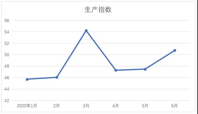 6月生產(chǎn)指數(shù)為50.75,產(chǎn)品產(chǎn)量環(huán)比增加。中棉行協(xié)問卷結(jié)果顯示,本月開機率及紗、布產(chǎn)量環(huán)比上漲。上半年受疫情影響,國內(nèi)消費需求明顯下降,下游采購清淡,除3月有所反彈以外,其他月份生產(chǎn)節(jié)奏均環(huán)比降低,目前已至低位,員工實行輪休制。部分紡企為穩(wěn)定用工,本月增大低支紗生產(chǎn)比重,因此開機率及產(chǎn)量有所增加。據(jù)中棉行協(xié)了解,有部分紡企考慮降薪以縮減開支,但同時也對降薪后員工是否會離職有所顧慮。