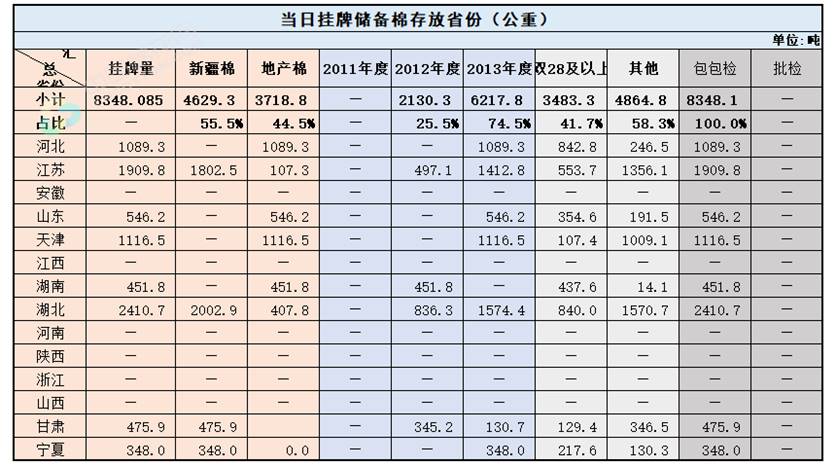 中國儲備棉管理有限公司定于7月28日上市銷售儲備棉重量8348.085噸,共34捆。具體庫點及數(shù)量見下表。