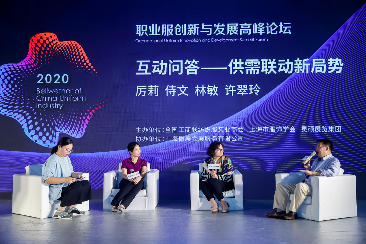 論壇最后,東華大學(xué)服裝學(xué)院職業(yè)服研究所副主任厲莉、蘇州市希爾達(dá)服飾有限公司合伙人侍文、恒天中纖紡化無(wú)錫有限公司總經(jīng)理助理&研發(fā)部經(jīng)理林敏、杰克縫紉機(jī)智能縫制中心總經(jīng)理許翠玲四位專(zhuān)家圍繞流行趨勢(shì)、設(shè)計(jì)、面料、品牌、互聯(lián)網(wǎng)、供應(yīng)鏈發(fā)展、生產(chǎn)、用戶(hù)等多個(gè)角度,一起探討職業(yè)裝產(chǎn)業(yè)升級(jí)轉(zhuǎn)型發(fā)展之路,進(jìn)行了精彩的互動(dòng)對(duì)話(huà)環(huán)節(jié)。