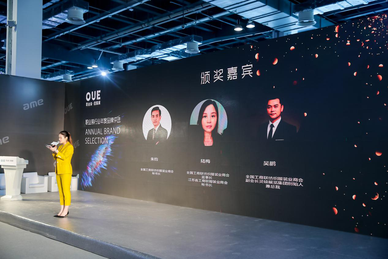 本次職業(yè)裝評(píng)選頒獎(jiǎng)盛典邀請(qǐng)到全國(guó)工商聯(lián)紡織服裝業(yè)商會(huì)秘書(shū)長(zhǎng)朱鈞先生,全國(guó)工商聯(lián)紡織服裝業(yè)商會(huì)監(jiān)事長(zhǎng)、江蘇省工商聯(lián)服裝業(yè)商會(huì)秘書(shū)長(zhǎng)陸梅女士,全國(guó)工商聯(lián)紡織服裝業(yè)商會(huì)副會(huì)長(zhǎng)、靈碩展覽集團(tuán)創(chuàng)始人兼總裁吳鵬先生為獲獎(jiǎng)企業(yè)頒獎(jiǎng)。