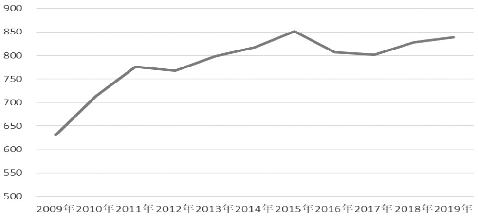 美國服裝進口金額在10年間也整體呈增長趨勢,2019年美國服裝進口額838億美元,較2009年的631億美元增長32.8%。