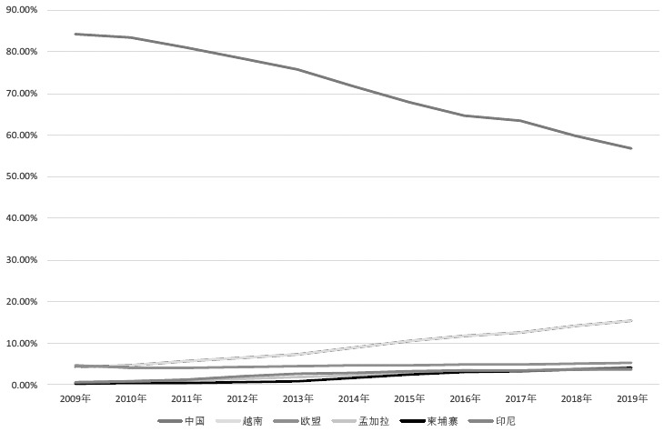 服裝進口:中國占比十年間下滑27個百分點,越南增加11個百分點