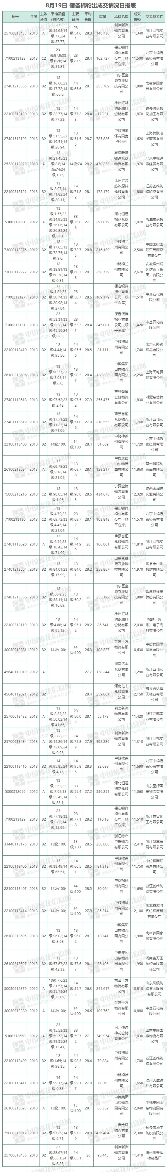 中國儲備棉管理有限公司定于8月19日上市銷售儲備棉重量9031.758噸,實際成交9031.758噸,成交率100%,成交均價11746元/噸,較18日上漲58元/噸,折3128價格12935元/噸,較18日下跌67元/噸。