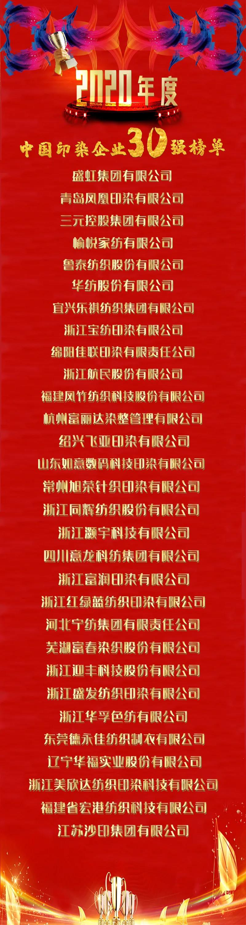 8月18日上午,中國印染行業(yè)協(xié)會(huì)六屆三次理事擴(kuò)大會(huì)議在浙江嘉興成功召開,會(huì)上協(xié)會(huì)發(fā)布“2020年度中國印染企業(yè)30強(qiáng)”名單。