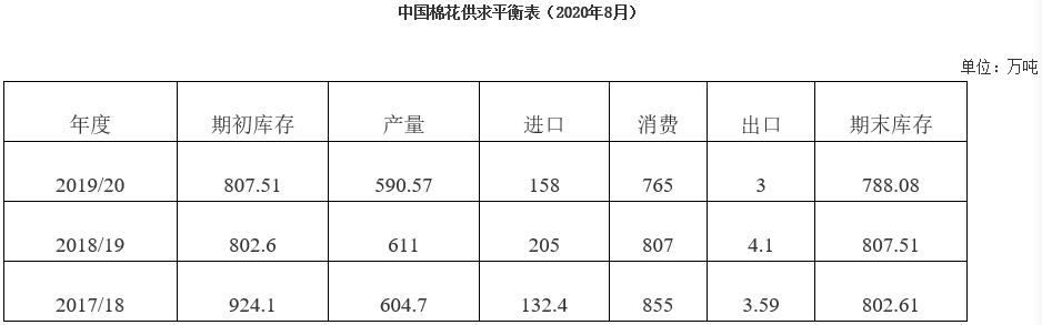 7月,國民經(jīng)濟(jì)繼續(xù)穩(wěn)定恢復(fù),棉花面積雖有所下降,但產(chǎn)量穩(wěn)中有增。據(jù)中國棉花協(xié)會(huì)調(diào)查,2020/21年度全國植棉面積4596.95萬畝,同比下降4.5%,預(yù)計(jì)總產(chǎn)量591.9萬噸,同比增長(zhǎng)0.2%。儲(chǔ)備棉適應(yīng)市場(chǎng)需求,輪出全部成交,新疆疫情影響疆棉外運(yùn),國內(nèi)現(xiàn)貨價(jià)格上漲。紡織市場(chǎng)處在淡季,原料維持低庫存,棉花商業(yè)庫存降幅收窄。棉花進(jìn)口持續(xù)增長(zhǎng),美棉占比達(dá)2/3。據(jù)中國棉花協(xié)會(huì)預(yù)測(cè),2019年度我國棉花進(jìn)口量158萬噸,較上期下調(diào)4萬噸,期末庫存調(diào)整為788萬噸。