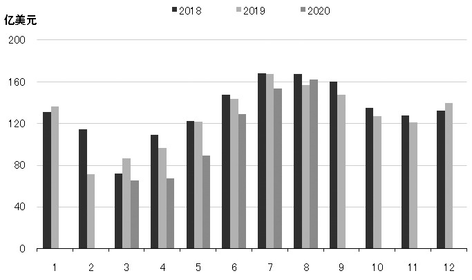 2020年1-8月紡織服裝累計出口1874.07億美元,增長8.11%(全國貨物貿(mào)易出口下降2.3%)。其中紡織品出口1047.98億美元,增長33.43%,出口額創(chuàng)歷史同期最高水平;服裝出口826.09億美元,下降12.86%,出口額創(chuàng)近十年以來同期最低水平。紡織品與服裝出口顯著分化,紡織品成為拉動紡織品服裝出口增速由負轉(zhuǎn)正的關(guān)鍵動力。