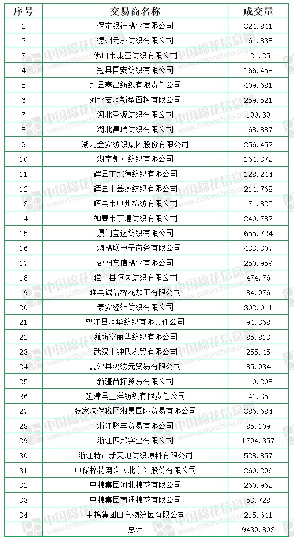 中國(guó)儲(chǔ)備棉管理有限公司定于9月9日上市銷售儲(chǔ)備棉重量10097.115噸,實(shí)際成交9439.803噸,成交率93.49%,成交均價(jià)11744元/噸,較8日下跌341元/噸,折3128價(jià)格13035元/噸,較8日下跌390元/噸。