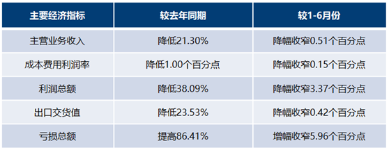 1-7月規(guī)模以上印染企業(yè)主營(yíng)業(yè)務(wù)收入1250.91億元,同比減少21.30%;主營(yíng)業(yè)務(wù)成本1099.32億元,同比減少21.19%,占主營(yíng)業(yè)務(wù)收入的87.88%;成本費(fèi)用利潤(rùn)率3.54%,同比下滑1.00個(gè)百分點(diǎn);銷售利潤(rùn)率3.38%,同比下滑0.91個(gè)百分點(diǎn);實(shí)現(xiàn)利潤(rùn)總額42.23億元,同比大幅減少38.09%;完成出口交貨值179.28億元,同比減少23.53%。1568家規(guī)模以上印染企業(yè)虧損戶數(shù)為640戶,虧損面達(dá)40.82%,同比擴(kuò)大17.77個(gè)百分點(diǎn);虧損企業(yè)虧損總額20.39億元,同比大幅提高86.41%。