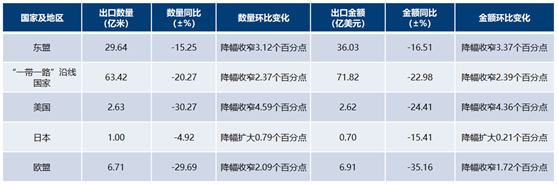 從主要出口市場(chǎng)來(lái)看,1-7月印染八大類產(chǎn)品對(duì)“一帶一路”沿線國(guó)家、東盟、歐盟及美國(guó)的出口呈現(xiàn)復(fù)蘇態(tài)勢(shì),出口數(shù)量和出口金額降幅環(huán)比均有小幅收窄(見下表)。對(duì)日本市場(chǎng)的出口,自4月以來(lái),出口數(shù)量和出口金額降幅呈逐月擴(kuò)大趨勢(shì),這主要與日本國(guó)內(nèi)防疫政策及近幾個(gè)月來(lái)疫情出現(xiàn)反復(fù)有關(guān)。