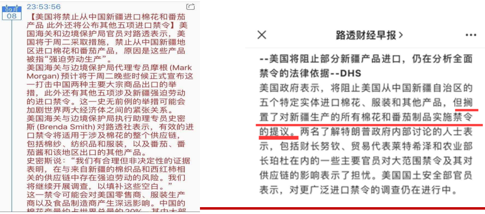 據(jù)外電報道,美國海關(guān)和邊境保護局(CBP)官員已準備好禁止從中國新疆地區(qū)進口棉花和番茄產(chǎn)品的命令。CBP發(fā)言人說,特朗普政府最初預(yù)計于周二宣布的行動由于“日程安排問題”而推遲到本周晚些時候。CBP稱,有效的進口禁令將適用于棉花的整個供應(yīng)鏈,包括棉紗、紡織品、服裝。