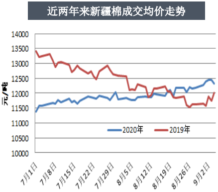 鄭棉雖基本面逐漸向好,且儲備棉成交好,都給較大支撐,但考慮10月將有大量新花上市對市場供應(yīng)造成較大壓力,9月將有新花開秤價也會對市場產(chǎn)生較大影響,因此9月下旬走勢可能會出現(xiàn)轉(zhuǎn)折。美國禁止進口新疆棉及其下游相關(guān)產(chǎn)品將對棉花下游消費產(chǎn)生非常不利影響,也會引起其他國家和品牌商紛紛跟隨,今天美國政府又暫緩對新疆棉制裁,悲觀情緒略緩解。較高的籽棉收購價卻對棉花現(xiàn)貨價格形成支撐。