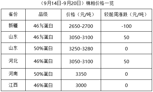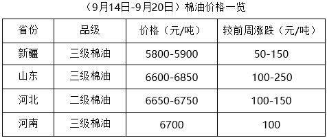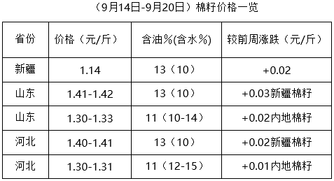上周(9月14-20日),各地新花采摘量逐步增加,市場啟動雖較往年延后,但入市收購的軋花廠穩(wěn)步增加,新棉籽少量上市,因陳籽余量不多,市場整體供應(yīng)緊張,支撐棉籽價格止跌反彈。期貨豆油、豆粕大漲,提振棉油、棉粕行情,市場震蕩難穩(wěn),油棉經(jīng)營難度再度提高。