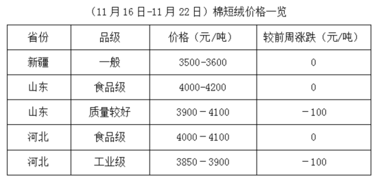 油棉廠經(jīng)營虧損持續(xù),開工率有所下降,棉短絨行情穩(wěn)定為主,個別持續(xù)開工廠家下調(diào)棉短絨價格出貨。下游化纖廠、精制棉廠開工有限,棉短絨采購不溫不火,市場供求關(guān)系相對平衡。在供求量沒有較大改變前,棉短絨將保持相對穩(wěn)定格局運行,局部波動調(diào)整或成為常態(tài)。