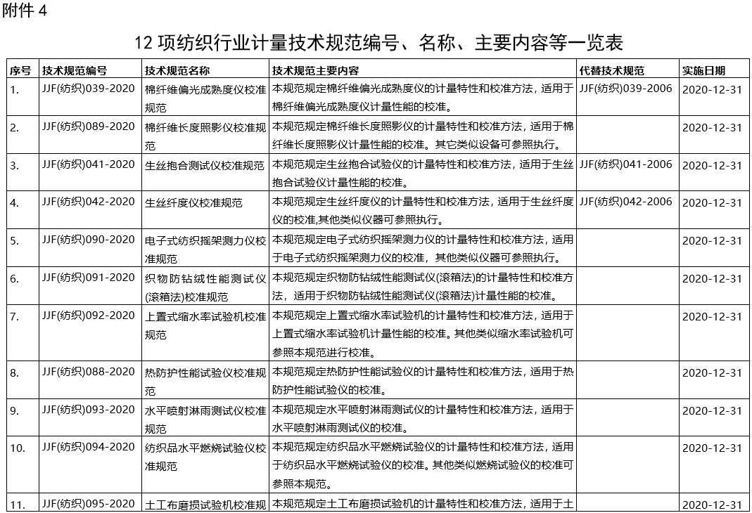 4.12項紡織行業(yè)計量技術規(guī)范編號、名稱、主要內容等一覽表.doc