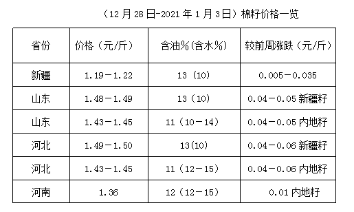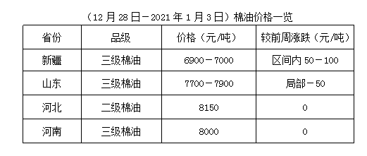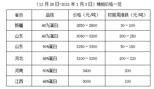上周(2020年12月28日-2021年1月3日),隨著元旦假期的到來,市場在年末時段表現(xiàn)良好,豆粕期貨周四(12月31日)大幅上漲,刷新歷史高位,豆油高位震蕩調整,利多棉油、棉粕行情,山東冬季環(huán)保預警解除,油棉廠陸續(xù)開始收購開工,棉副產品貨少持價為主,但因元旦假期到來,市場整體成交少量。