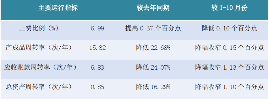表12020年1-11月規(guī)上印染企業(yè)主要運(yùn)行質(zhì)量指標(biāo)