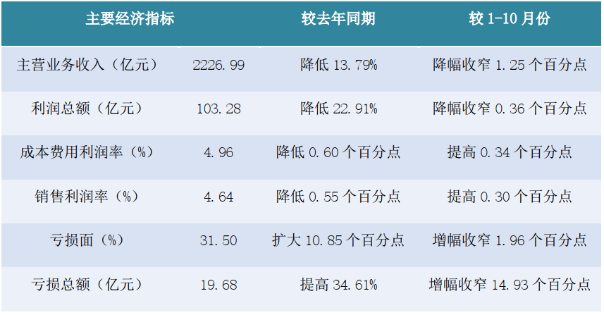 表22020年1-11月規(guī)上印染企業(yè)主要經(jīng)濟(jì)指標(biāo)