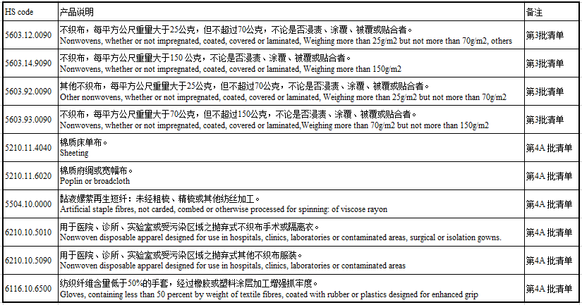 2020年12月29日,美國貿(mào)易代表辦公室(USTR)表示,將延長部分中國產(chǎn)品的關(guān)稅免豁期,自2021年1月1日延長至2021年3月31日。延長關(guān)稅免豁期的產(chǎn)品包括以下醫(yī)療用紡織和成衣產(chǎn)品: