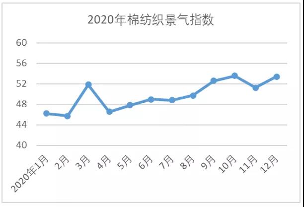 2020年是極不平凡的一年。在黨中央的堅(jiān)強(qiáng)領(lǐng)導(dǎo)下,我國疫情防控和經(jīng)濟(jì)社會(huì)發(fā)展取得重大成果。國內(nèi)經(jīng)濟(jì)運(yùn)行持續(xù)穩(wěn)定恢復(fù),在世界主要經(jīng)濟(jì)體中率先實(shí)現(xiàn)正增長,經(jīng)濟(jì)總量邁上百萬億元新臺(tái)階。從行業(yè)看,前4個(gè)月受疫情影響,我國棉紡織行業(yè)生產(chǎn)運(yùn)行面臨嚴(yán)峻挑戰(zhàn),行業(yè)處于欠景氣狀態(tài)。5月開始,隨著國內(nèi)疫情防控形勢持續(xù)向好,消費(fèi)市場穩(wěn)步復(fù)蘇,行業(yè)景氣度逐步回升。尤其9月以后,行業(yè)產(chǎn)銷明顯好轉(zhuǎn),景氣指數(shù)連續(xù)高于枯榮線。