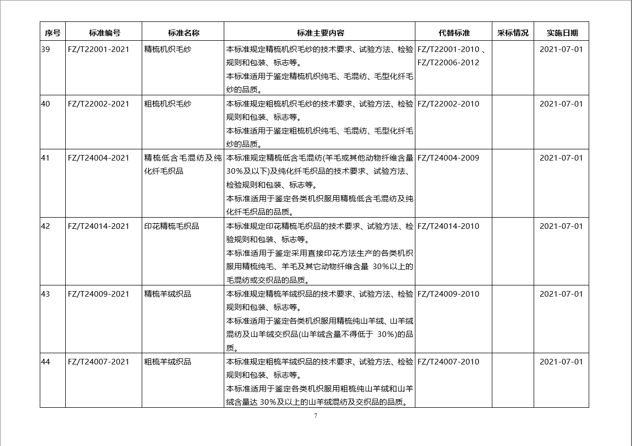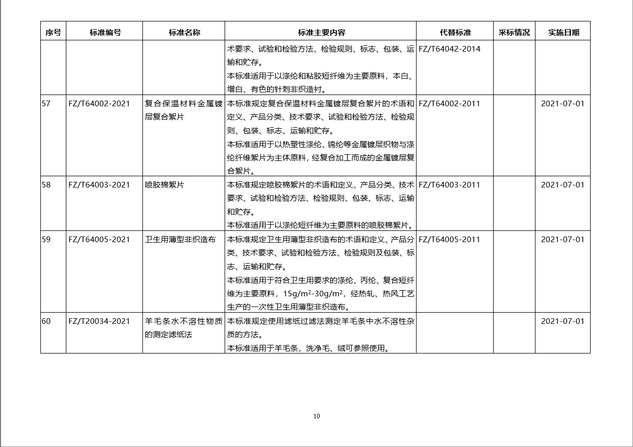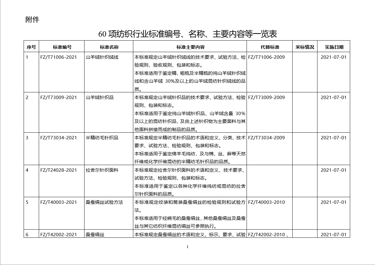 3月5日工業(yè)和信息化部批準(zhǔn)公布紡織行業(yè)標(biāo)準(zhǔn)60項(xiàng)。以上紡織行業(yè)標(biāo)準(zhǔn)由中國(guó)標(biāo)準(zhǔn)出版社出版。