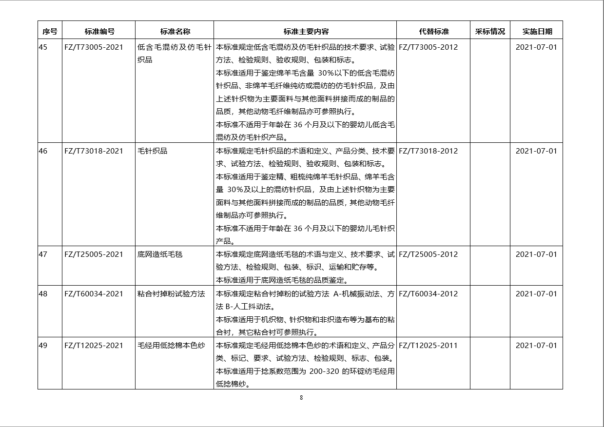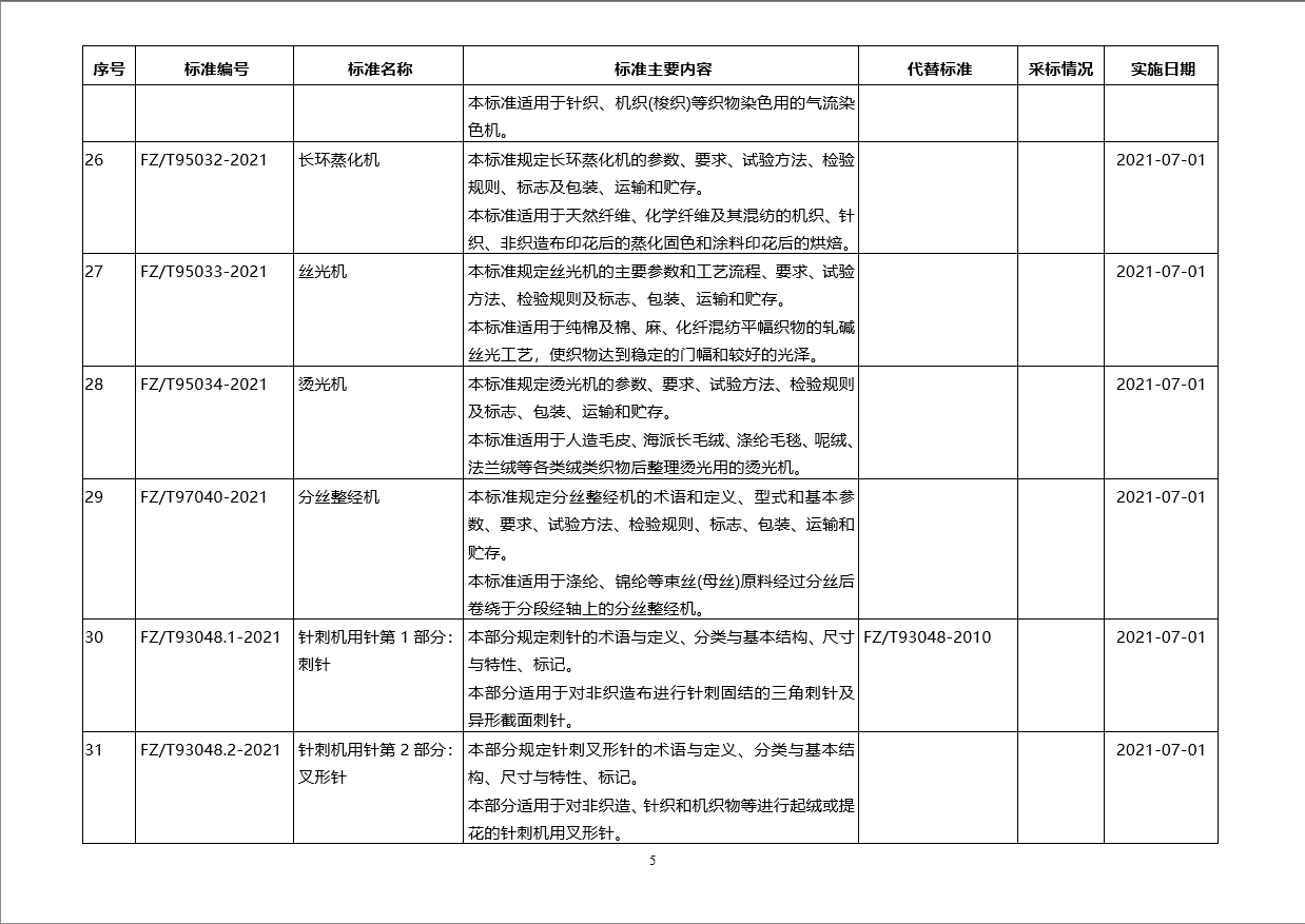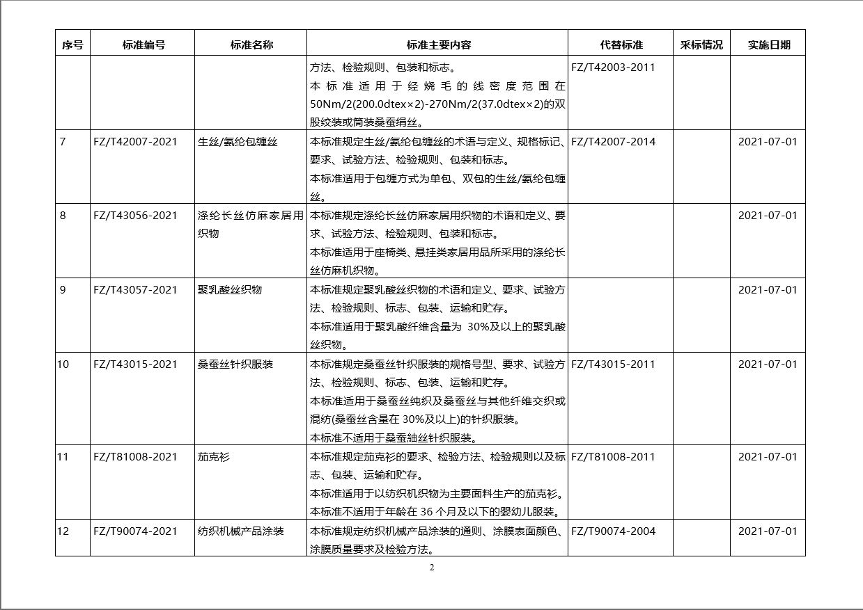 3月5日工業(yè)和信息化部批準(zhǔn)公布紡織行業(yè)標(biāo)準(zhǔn)60項(xiàng)。以上紡織行業(yè)標(biāo)準(zhǔn)由中國(guó)標(biāo)準(zhǔn)出版社出版。