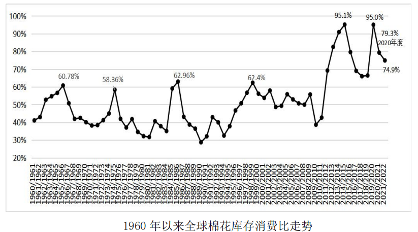 一、2021/22年度全球棉花期末庫存消費比降速放緩