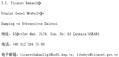 調(diào)查機關(guān)(土耳其貿(mào)易部)聯(lián)系方式: