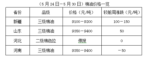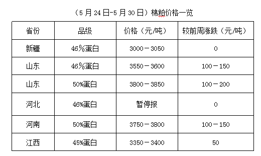 上周(5月24-30日),受市場資源有限支撐,棉籽價格仍處高位上漲中,但因豆油、豆粕期貨低位震蕩調(diào)整,棉油、棉粕行情難以同步支撐高價原料成本,油棉廠經(jīng)營虧損加劇,不少廠家高位停收避險,部分廠家執(zhí)行前期棉籽合同為主,個別仍堅持少量收購,棉籽報價略顯混亂。油棉廠開工率有限,對棉副產(chǎn)品低價惜售,貨少廠家則停報,等待行情回暖,產(chǎn)品抗跌動能較強,油棉加工進入階段性淡季調(diào)整中。