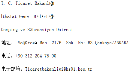 調(diào)查機(jī)關(guān)(土耳其貿(mào)易部)聯(lián)系方式: