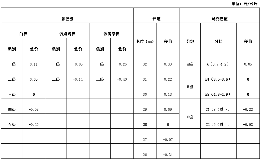 2021年7月籽棉收購結(jié)算差價參考表(新疆細(xì)絨棉)