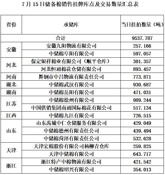 1、7月15日上市銷售儲備棉數(shù)據(jù)明細(xì)表(包包檢)